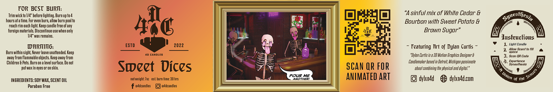 4D Candles is an art project I began in 2022 that I have developed significantly over the last year. Each 4D Candle scent is paired with its own digital artwork created by a local or metro Detroit artist!